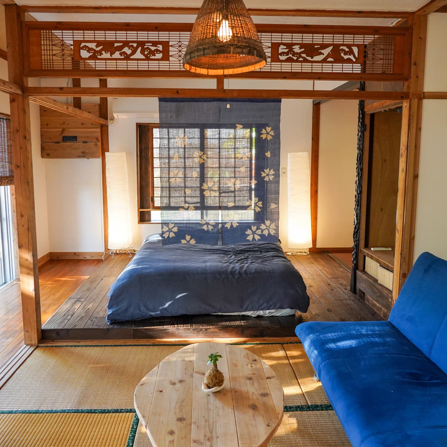 畳のリビングルームでゆっくりとくつろぎ、夜はテラスルームで星を眺める。