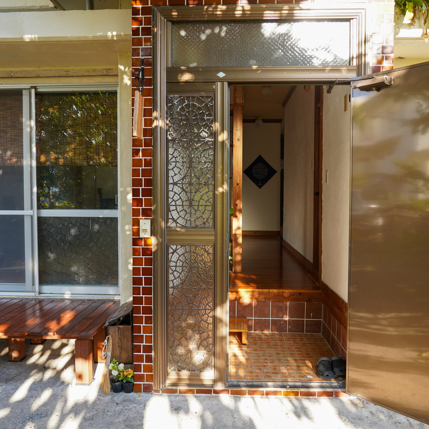 日本の文化を感じる「縁側」に座って、ゆんたくも。最大10名様ご宿泊可能です